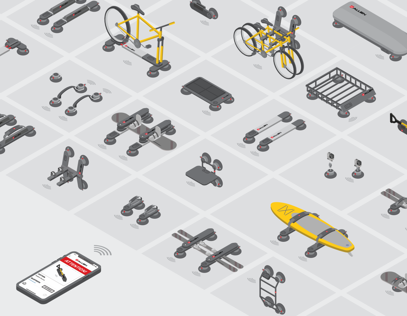 Allen Sports approached us with a mission to redefine bike racks—creating a solution that would meet the needs of modern cyclists with simplicity, innovation, and reliability. The goal was to design a system that could securely attach to vehicles without traditional mounting methodology and provide the user with live feedback - ensuring peach of mind on the road.